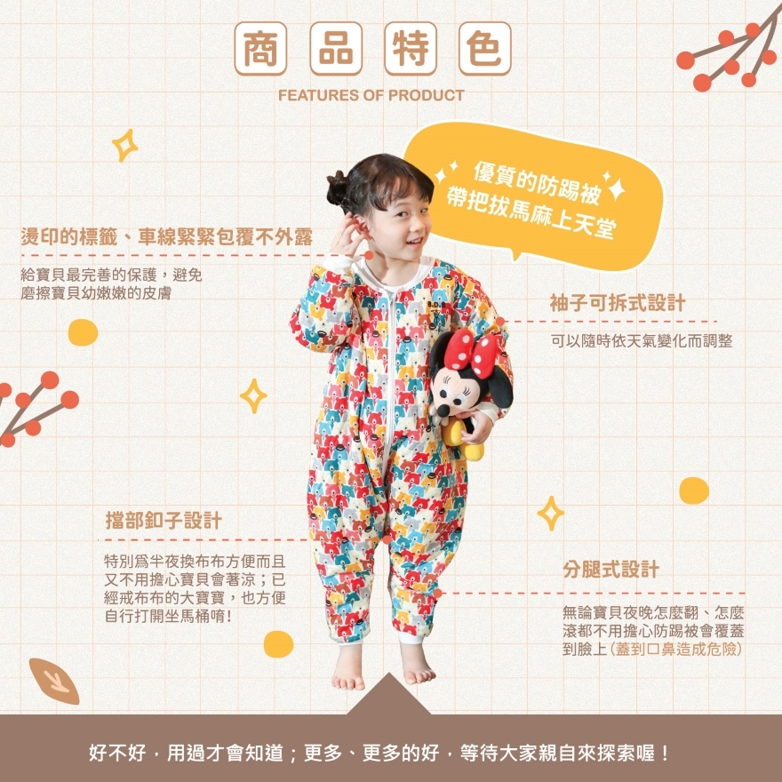 【款式】分腿式防踢被(袖子依溫度可自由拆卸)